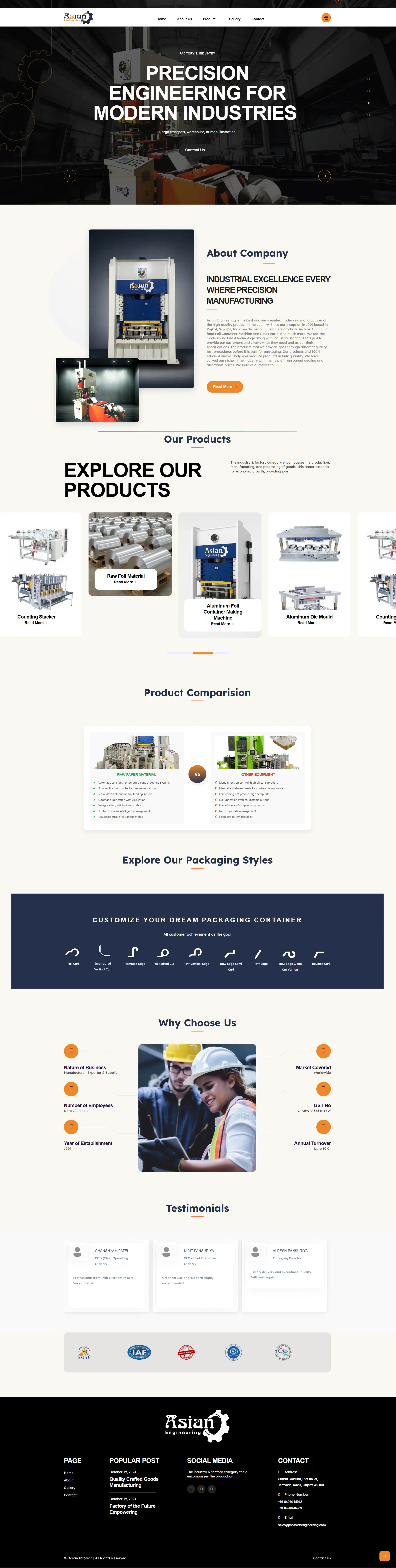 Asian Engineering is a manufacturing-focused company specializing in high-quality paper-based products such as paper cups, paper dishes, and other eco-friendly disposable items. We are dedicated to producing safe, hygienic, and sustainable paper products that meet the growing demand for environmentally responsible food packaging and serving solutions